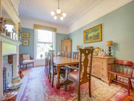Period marble fire surround with inset log burning stove, original coving to ceiling, dado rail, stripped wood floor, uPVC double glazed window overlooking rear garden.